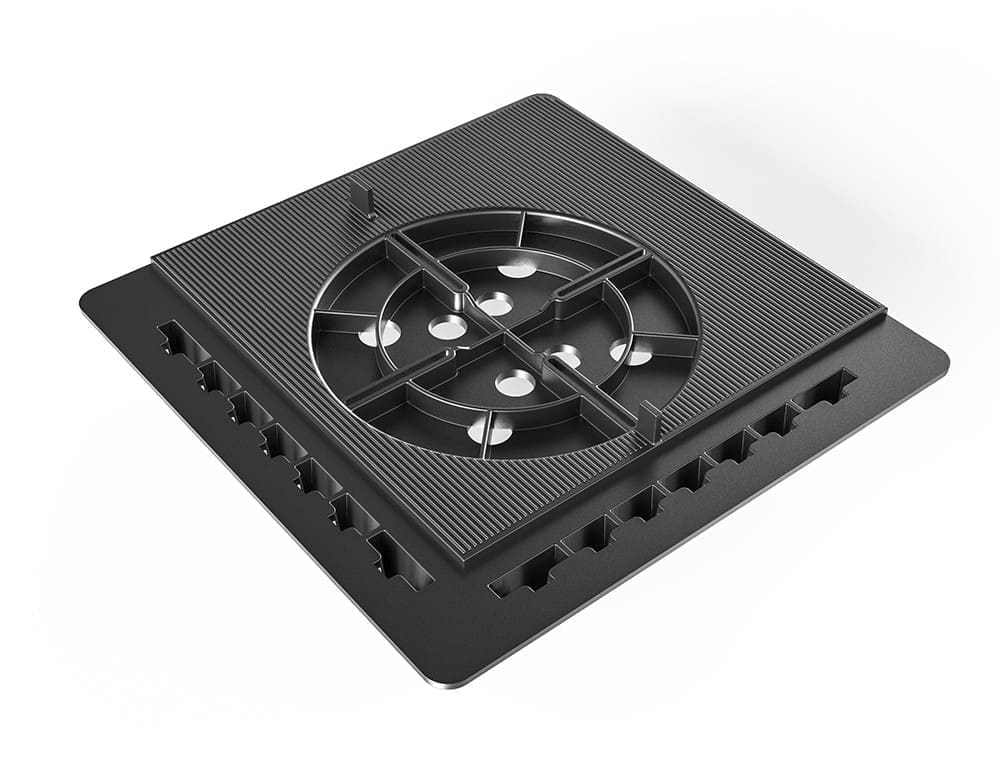 Pour l’installer, placez simplement les plaques à dalle pour finition latérale sur la tête du plot en utilisant les encoches prévues à cet effet. Vous pouvez l’utiliser le long du mur pour une finition esthétique, ou le long des rives et des angles pour un habillage latéral impeccable.