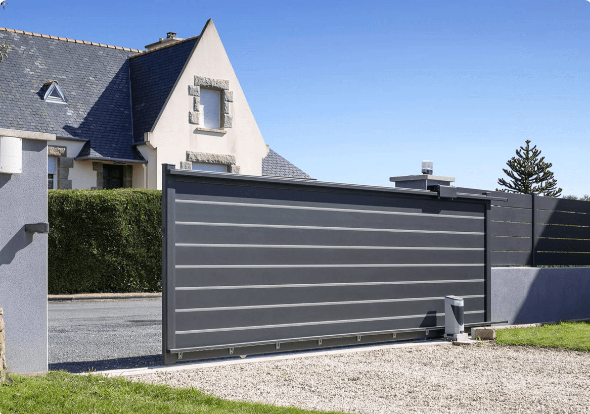 Le Portail Coulissant Aluminium – MARSEILLE incarne le parfait équilibre entre esthétique contemporaine, robustesse et fonctionnalité. Conçu pour répondre aux besoins d’accès restreint ou de terrain en pente, ce portail s’impose comme une solution idéale pour les entrées résidentielles exigeantes. Son design élégant à lames horizontales pleines garantit une occultation totale tout en renforçant la sécurité de votre propriété.