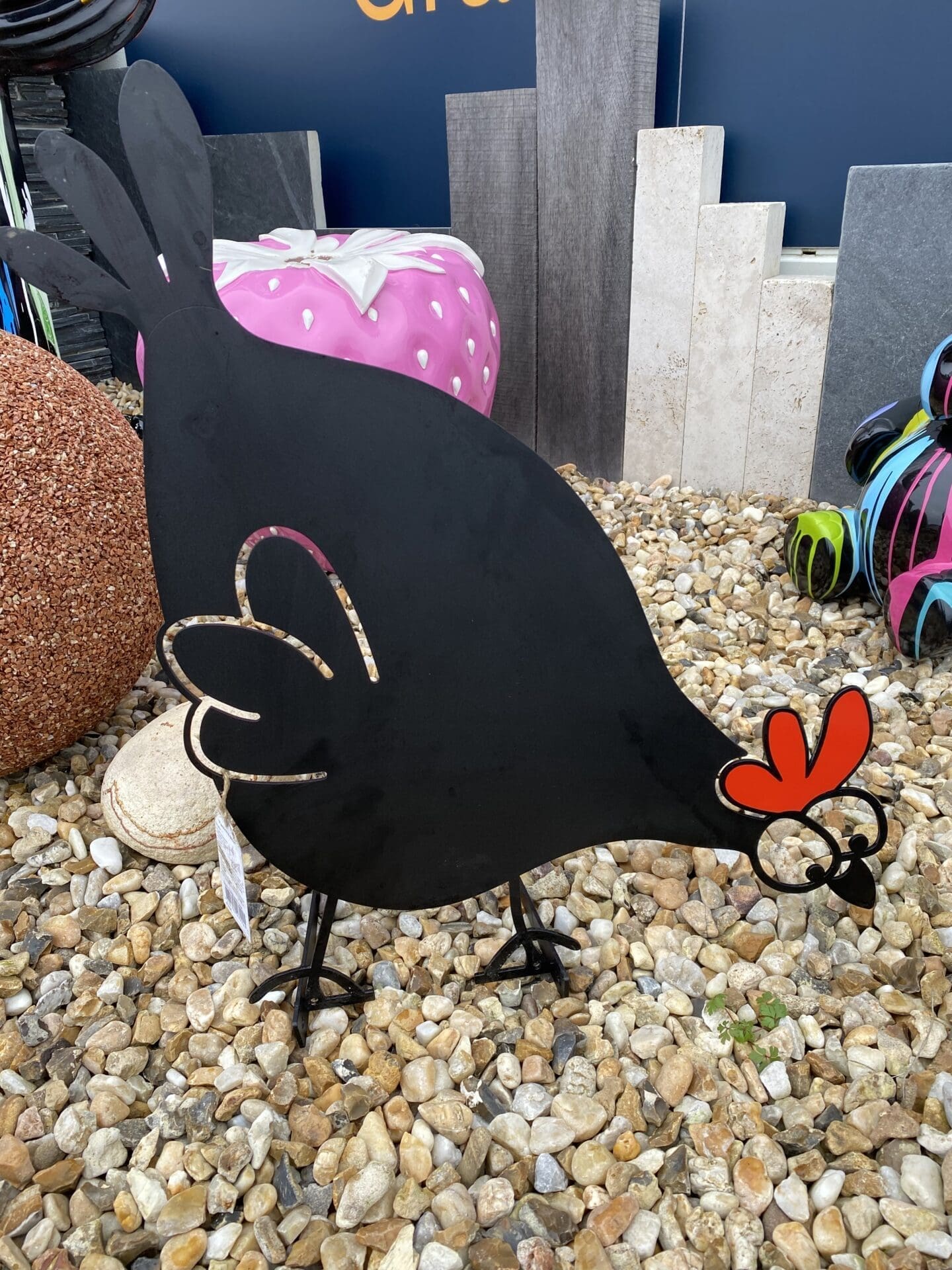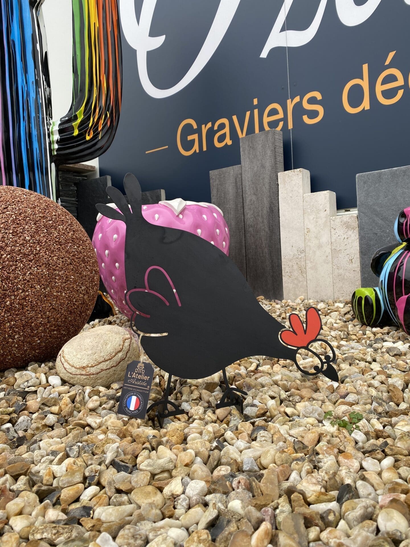 Plongez dans l’univers enchanteur de la décoration extérieure avec notre irrésistible Poule “Suzette” à crête rouge en acier, une création unique d’Ozaé Graviers Déco qui apportera une touche de charme et de fantaisie à votre jardin, terrasse ou espace extérieur. Découvrez les caractéristiques exceptionnelles de notre Poule “Suzette”, conçue pour égayer votre environnement et susciter l’admiration de vos invités grâce à son allure ludique et son design soigneusement travaillé.